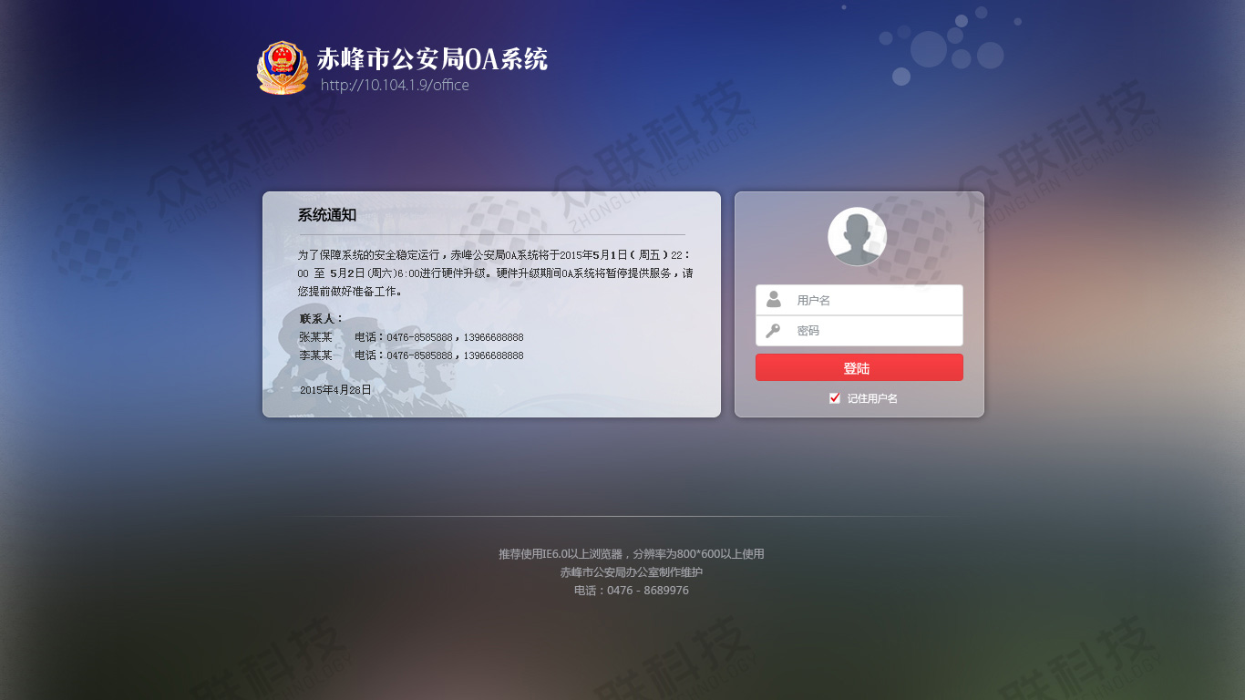 歡迎進(jìn)入赤峰市眾聯(lián)科技有限公司! 地址:赤峰市紅山區(qū)昭烏達(dá)路匯豐商務(wù)三層眾聯(lián)科技有限公司 聯(lián)系電話:0476-8337811 15904760137 微信號:cfzlkj 工作時(shí)間:8:00-17:30